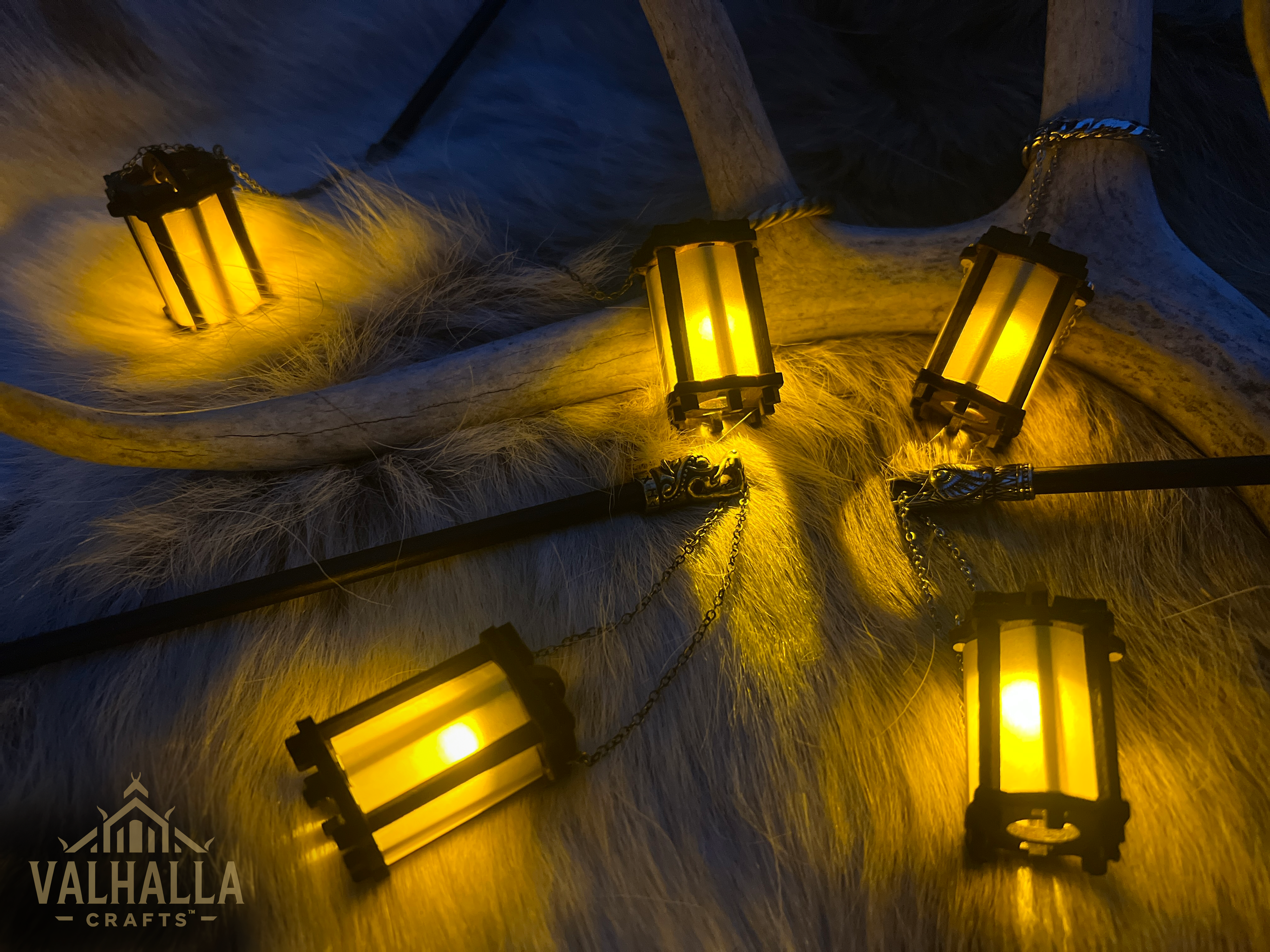 Charming lantern earrings — 2"x1.25"x1.25" and just 4g each! Sturdy yet light, they pair beautifully with 7.5" hair sticks for a magical glow. Inspired by traditional Viking rawhide lanterns for a touch of old-world charm.